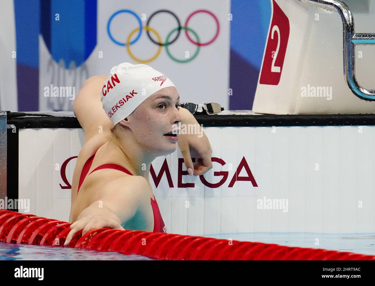 Canada's Penny Oleksiak reacts following the women's 100m freestyle , The favorite to win the olympic women’s 100m freestyle is mollie o’callaghan of australia.